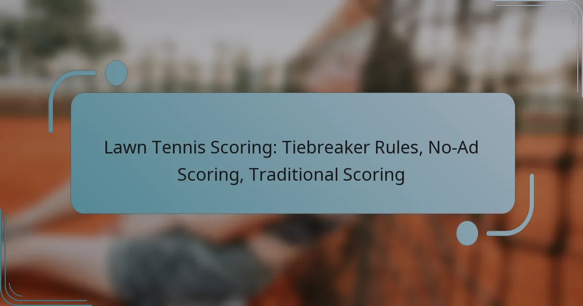 Lawn tennis scoring includes various methods to determine the outcome of games and sets, each with its own rules. Tiebreakers are employed when the score reaches 6-6 in a set, while no-ad scoring simplifies the game by eliminating the advantage rule after deuce. Traditional scoring utilizes a unique point system that features terms like “love,” “deuce,” and “advantage,” which can be challenging for beginners to grasp.